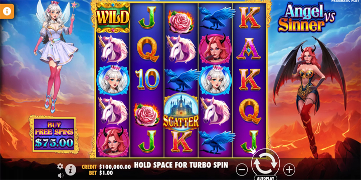 Menggunakan format slot standar dengan 5 gulungan, Angel vs Sinner menawarkan sejumlah garis pembayaran yang cukup variatif untuk meningkatkan peluang menang. Struktur permainan yang mudah dipahami cocok untuk pemain dari berbagai tingkat pengalaman. Fitur putar otomatis dan kontrol sederhana membuat sesi permainan menjadi nyaman dan menyenangkan.